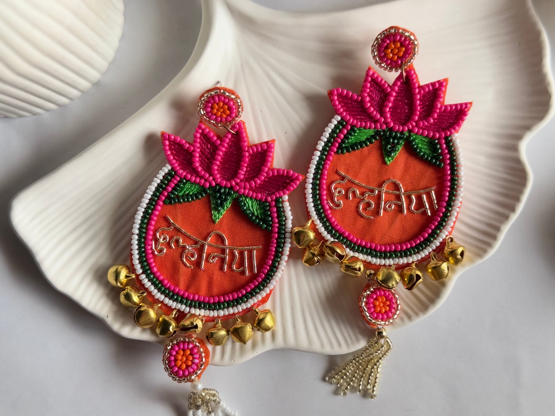 Celebrate tradition with the Dulhaniya Earrings, where heritage meets artistry. Handcrafted with vibrant beads, lotus embroidery, and ghungroo accents, these earrings are designed to radiate festive charm while keeping your look effortlessly unique.